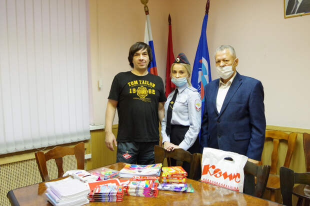 Представитель волонтерской организации встретил сотрудников полиции и с благодарностью принял подарки для детей к грядущему непростому новому учебному году.